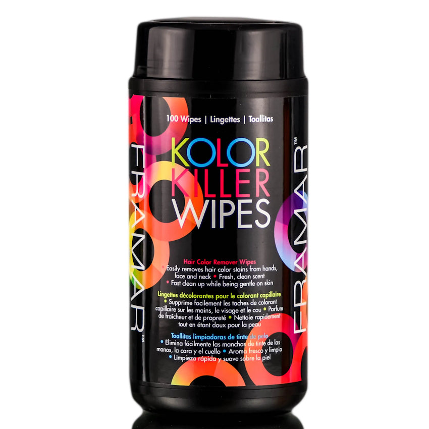 Easily removes hair color stains from hands, neck and face. Fresh, clean scent leaving you and your client smelling fantastic. Fast clean up while being gentle on skin. 100 Wipes per can. Wipes easily pop up out of the top.
