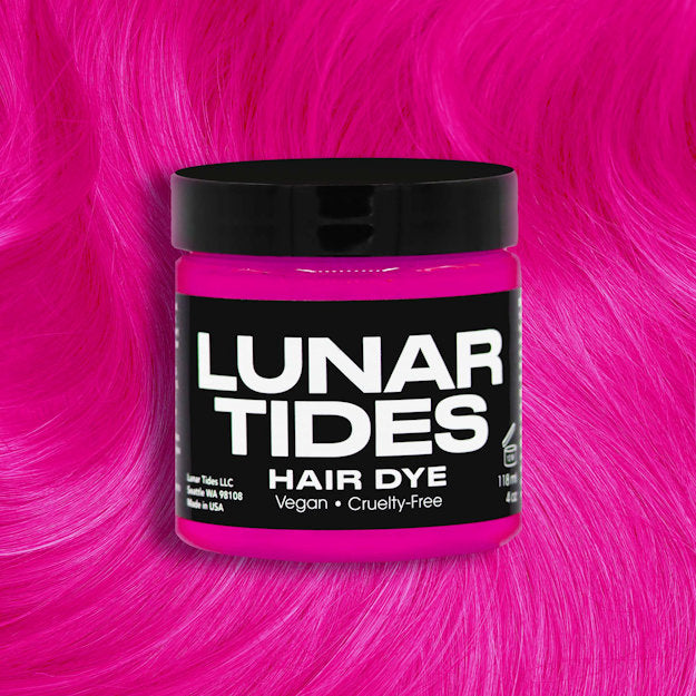 Turn Up the Brightness with Lunar Tides neon colours! Neon Dragonfruit is a vibrant pink that glows under blacklight. Highly pigmented to create a long-lasting glowing colour on hair pre-lightened to an optimum level.