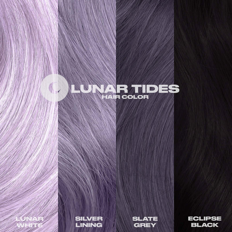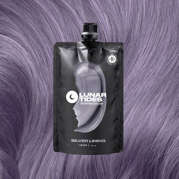 Lunar Tides Silver Lining is a one-of-a-kind light silver hair dye with blue undertones. Recommended for use on hair lightened to lightest blonde or platinum.