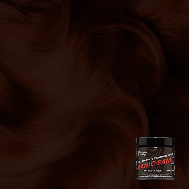 Supernatural Shade - Bat Outta Hell is a dark, espresso brown hair dye with warm undertones. This shade is here to stand out and be taken seriously! For best results use on pre-lightened hair or add to your current natural light brown hair for added pigment and intensity! All semi-permanent hair dyes work best on pre-lightened hair. Always do a strand test to make sure this colour will work well on your current base colour!