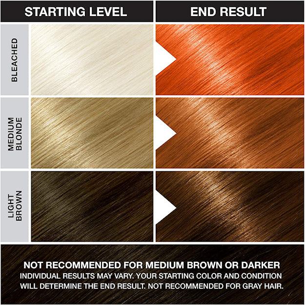 Colours displayed are an indication only, it is important to research colours before selecting. Due to a large number of factors that can affect the final outcome, dye results cannot be guaranteed. Always perform a strand test before proceeding. For more information on how to use this product please click here.