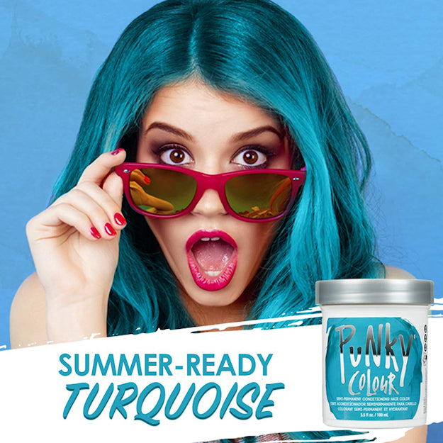 Punky Colour Turquoise. Punky Colour is a semi-permanent conditioning colour. All shades can be mixed together to create your own unique colour. To achieve the best results hair must be pre-lightened to an optimum level.